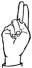 На ћирилици написано САНДРА КОЈОВИЋ састоји се из 13 слова [?]. Исписано ћириличном једноручном азбуком за глувонеме: